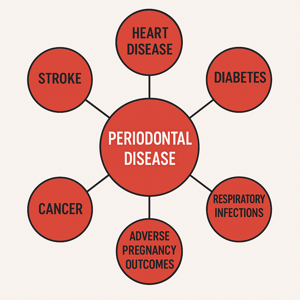 Periodontal disease—often called gum disease—is a chronic inflammatory condition that affects the tissues supporting the teeth. It begins with bacterial buildup along the gumline and can progress to the destruction of gum tissue, ligaments, and even bone if left untreated. Although common, periodontal disease is highly preventable and manageable when detected early.